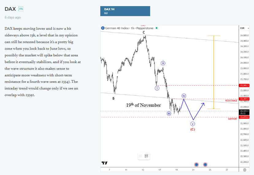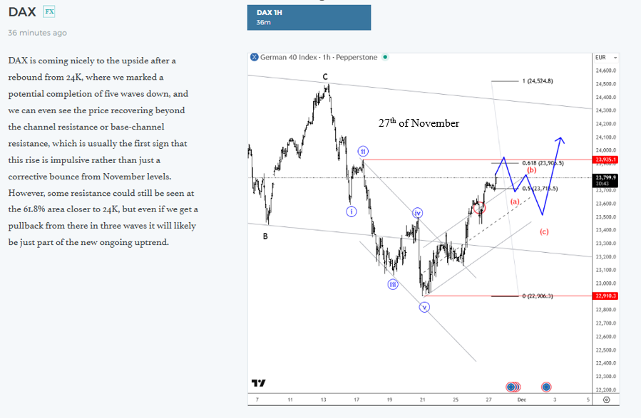 It only took one day for DAX to fill our retracement target. Let’s take a look at the update we sent 7 days ago, 20th of November:
